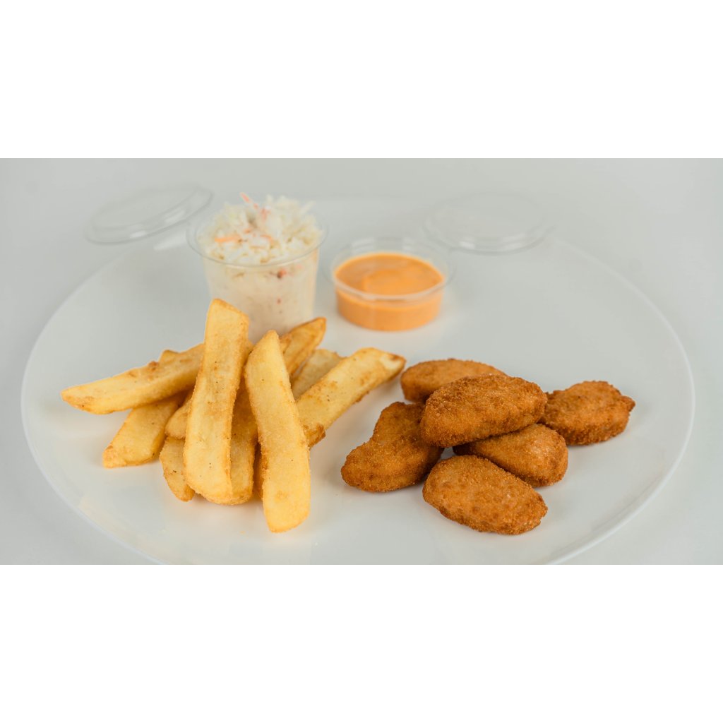 Garden Gourmet nugetky, hranolky, coleslaw, francouzská omáčka
